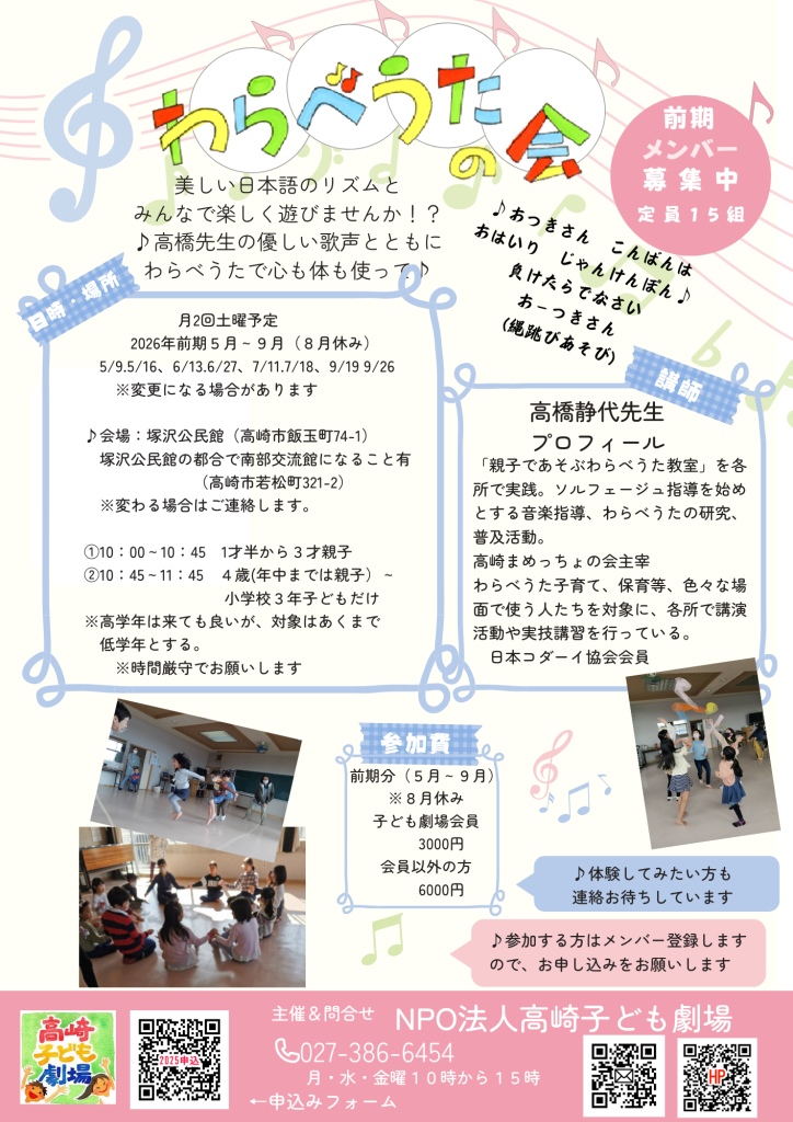 参加、見学の申込みは高崎子ども劇場へ